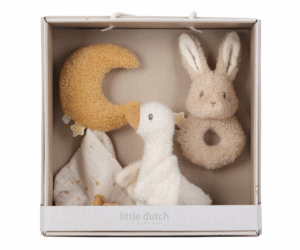 Kinkekomplekt pehmete mänguasjadega Newborn Naturals – Little Dutch, täiuslik kingitus, mis toob soojust, rõõmu ja turvatunnet! Little Dutch’i Newborn Naturals kollektsiooni kinkekomplekt on loodud spetsiaalselt vastsündinutele, pakkudes nii kaisutamist, mängulusti kui ka rahustavat seltsi. See kaunis komplekt sobib ideaalselt beebile sünnikingiks, babyshowerile või soo teatamise peole.