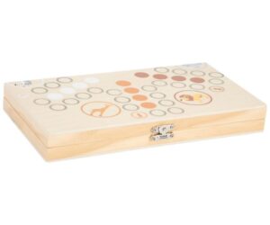Safari teemalises lauamängus jooksevad elevandi, kaelkirjaku, sebra, lõvi, leopard ja krokodilli kujuga puust kujukesed ümber mängulaua. Täringul olevad numbrid ütlevad mängijatele, mitu sammu iga loomakuju tohib astuda.