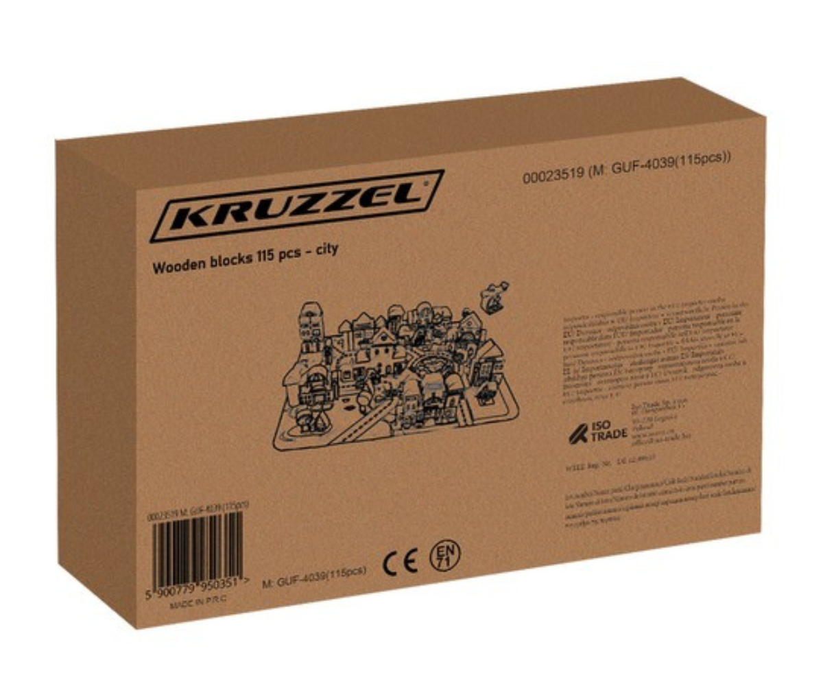 Puidust klotsikomplekt Linn – 115 klotsi ja puslematt pakub lastele võimalust ehitada oma unikaalseid linnakesi, projekteerida tänavaid ja rajada hooneid. Mitmekülgsed klotsid võimaldavad kujundada linna vastavalt lapse loovusele, pakkudes tundideks kaasahaaravat mängurõõmu.