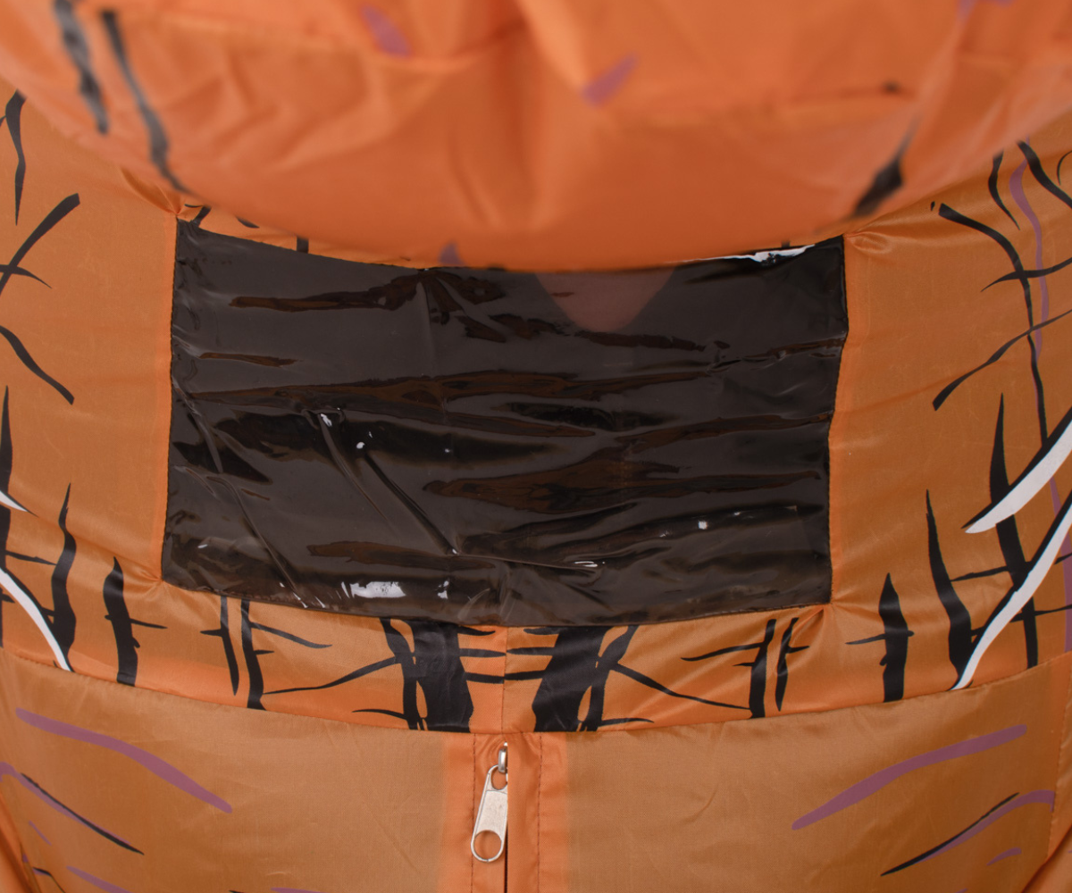 Kostüümiga on kaasas spetsiaalne puhur, mis muudab kostüümi veelgi muljetavaldavamaks. Kostüüm kinnitub eest lukuga. Kindad on kostüümi külge õmmeldud nii, et neid saab vabalt eemaldada ja mitte kaotada. Dinosauri suu all on läbipaistev “aken”, mis võimaldab jälgida ümber toimuvat.