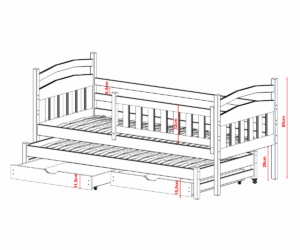 Kui otsid lastevoodit, mis oleks samaaegselt funktsionaalne, turvaline ja stiilne, siis see GALAXY kahekohaline sahtelvoodi on ideaalne valik 🌿 Voodi on valmistatud vastupidavast männipuidust ning selle läbimõeldud disain sobib suurepäraselt igasse lastetuppa. Kaks magamiskohta, eemaldatav turvapiire ja mahukad sahtlid loovad lapsele turvalise ja korrastatud une- ning mängukeskkonna.