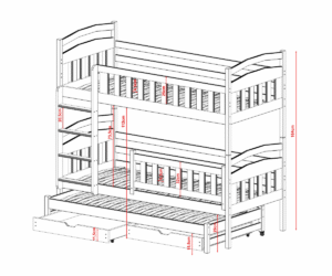 ✔ Ruumi säästev ja praktiline disain – kolme magamiskohaga lahendus, mis jätab lastetuppa rohkem mänguruumi.