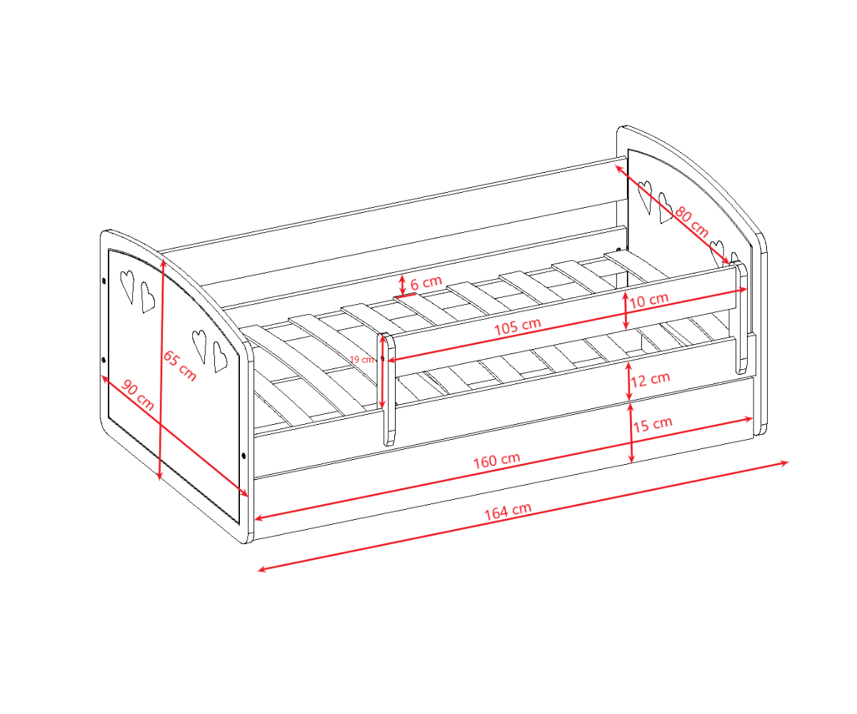 Julia voodi ühendab endas kerge ja romantilise disaini ning praktilisuse. Selle võluv stiil ja armsad südamekujulised piirded lisavad lapse toale erilise atmosfääri. Julia mööblikollektsioon pakub nii funktsionaalsust kui ka elegantsi, luues hubase ja kauni sisekujunduse. Peened detailid ning hoolikalt viimistletud elemendid rõõmustavad lapsi, samas kui turvalised lahendused annavad vanematele kindlustunde.