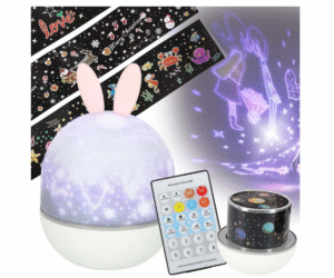 - Täheprojektor 6 slaidiga – vali tähtede, planeetide, veealuse maailma või pidulike teemade (sünnipäev, jõulud, sõbrapäev) vahel.