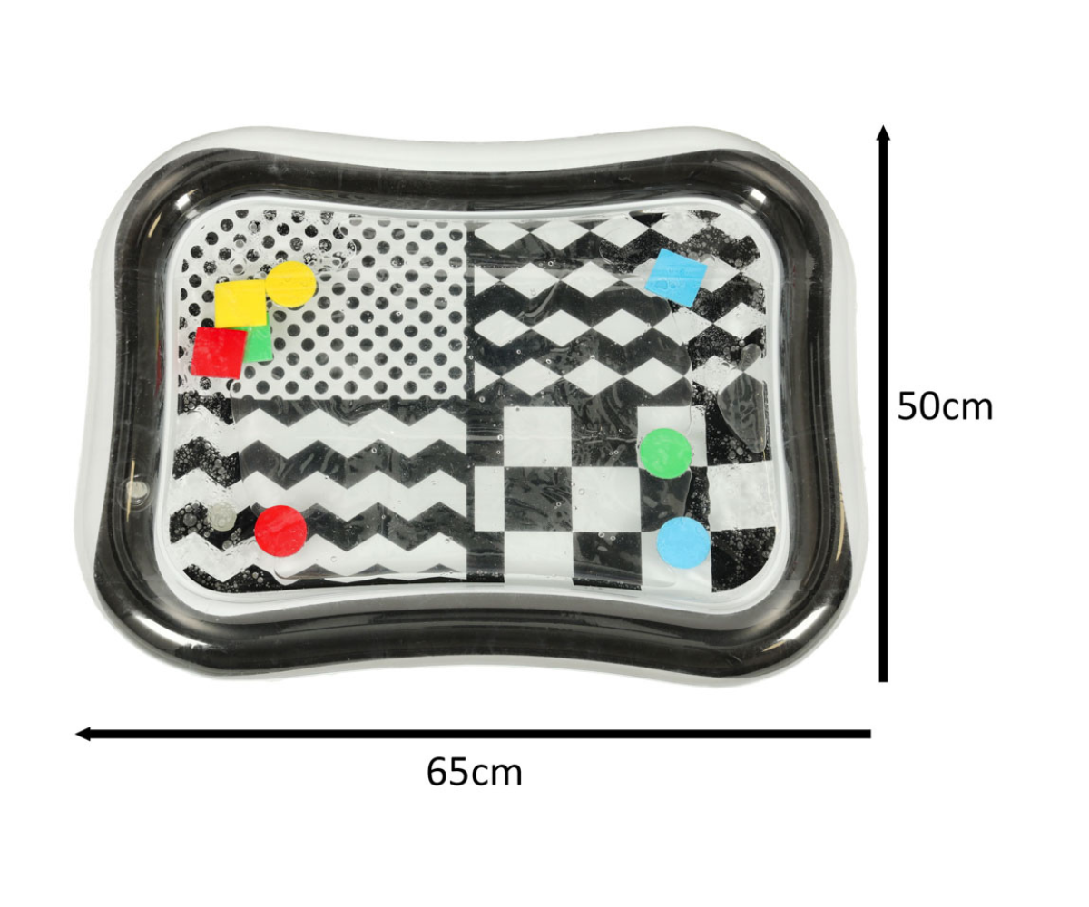 Must-valge sensoorne veematt aitab arendada lapse nägemisteravust, käe-silma koordinatsiooni ja peenmotoorikat. Liikuvad veekujundid ergutavad beebit sirutama käsi ja katsuma, mis omakorda tugevdab lihaseid ja toetab roomamise arengut.