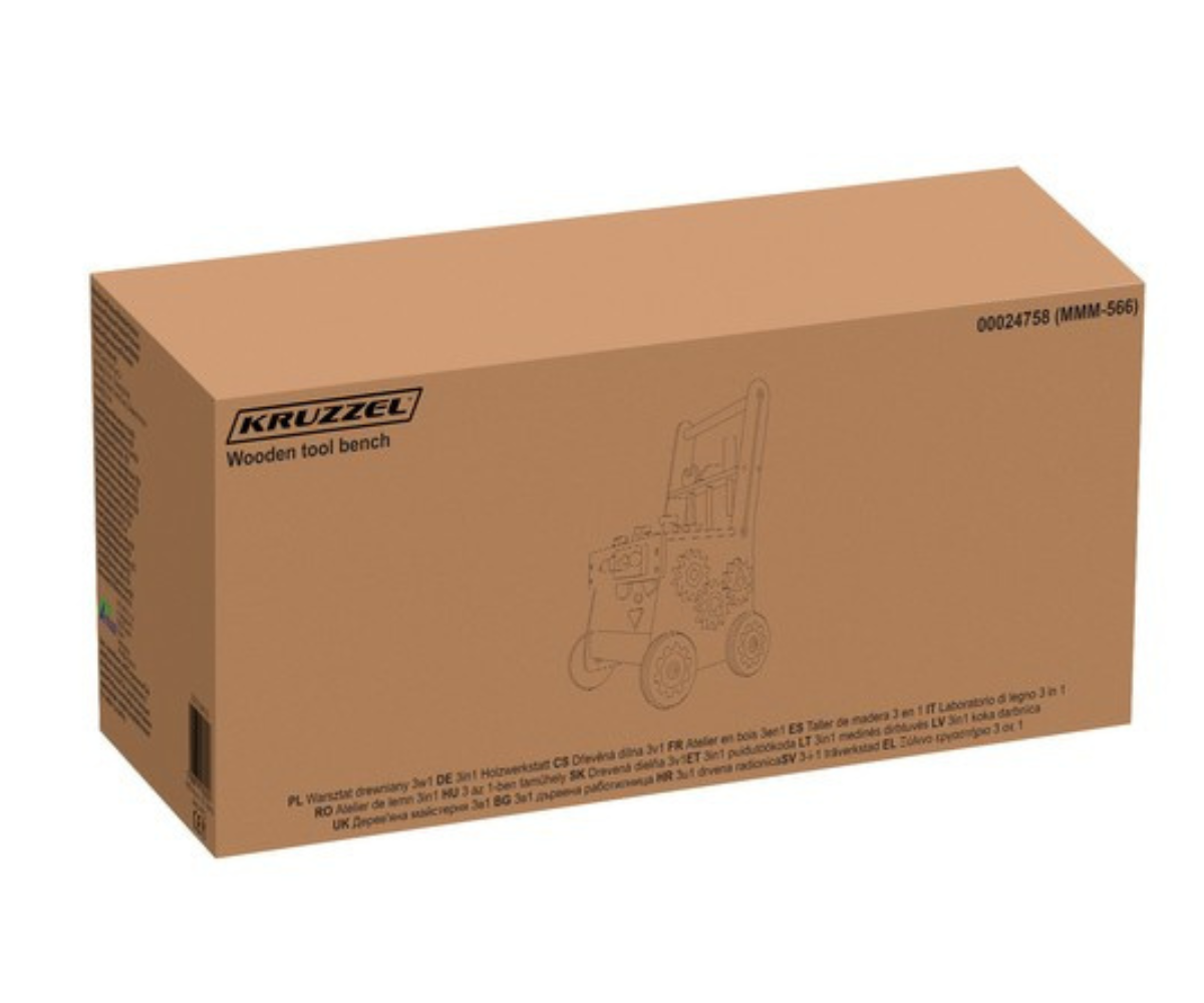 Laste puidust 3-ühes tööriistadega töölaud on suurepärane mängukomplekt väikestele meistrimeestele, arendades samal ajal nende käelist osavust, kujutlusvõimet ja loogilist mõtlemist. Tugevast ökoloogilisest puidust valmistatud töölaud on ohutu, vastupidav ja mitmekülgne – see toimib töölaua, hoiuriiuli ja lükatava mängukäruna.