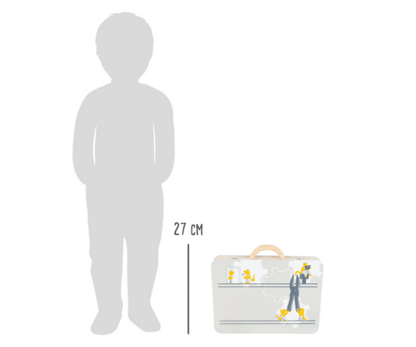 Klassikalistes töökojavärvides puidust tööriistakohvri abil saavad lapsed rollimängu käigus remondimeistriteks ja -tüdrukuteks.