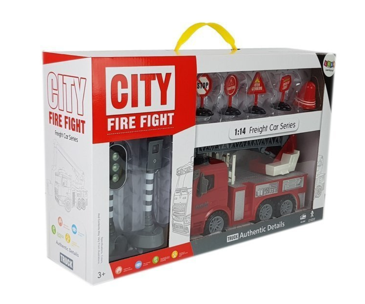 Tuletõrjeauto mängukomplekt – helid, valgusefektid ja liiklusmärgid
