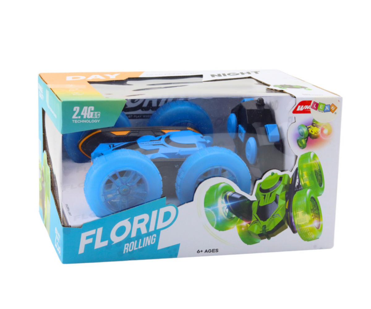 Kaugjuhitav trikiauto RC 360° – sinine on ideaalne mänguasi lastele, kes naudivad kiireid sõite, akrobaatilisi trikke ja dünaamilisi manöövreid. Tänu topeltkülgedega disainile suudab auto sõitu jätkata ka pärast ümberpööramist, mistõttu pole takistused probleemiks.