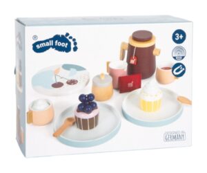 Selle moodsa kohvi ja tee serveerimiskomplektiga kolib Skandinaavia disain laste mängukööki! Põhjalik mängukomplekt kahele inimesele sisaldab tasse, taldrikuid, kohvilusikaid, suhkrukaussi, piimakann ja palju mängutoite nagu kohvikoor, teepakk, mustikad, muffinid ja puidust joogikettad.