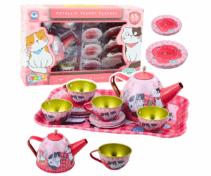 Metallist tee- ja kohviserviis lastele kassimustriga – 15-osaline, viige oma laps mängumajade ja teeõhtute maagilisse maailma selle imearmsa roosa metallist tee- ja kohviserviisiga. Komplekt sisaldab 15 hoolikalt kujundatud elementi, mis on dekoreeritud rõõmsate kassimotiividega – täiuslik valik rollimängudeks, fantaasiarikkaks ajaveetmiseks ja sotsiaalsete oskuste arendamiseks.