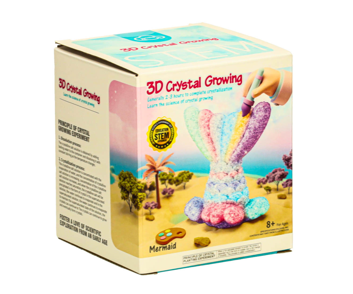 See merineitsi kristallikasvatuse komplekt võimaldab lastel avastada kristallide moodustumise imelist maailma. Komplekti kuuluv kristalliline liiv ja muud tarvikud pakuvad ainulaadset võimalust katsetada ning samal ajal arendada lapse kannatlikkust ja keskendumisvõimet. Loovus saab väljundi läbi värvide ja pintslite, millega saab kujundada merineitsi saba, muutes selle just enda soovide järgi eriliseks. Komplekt on soovitatav alates 8. eluaastast.