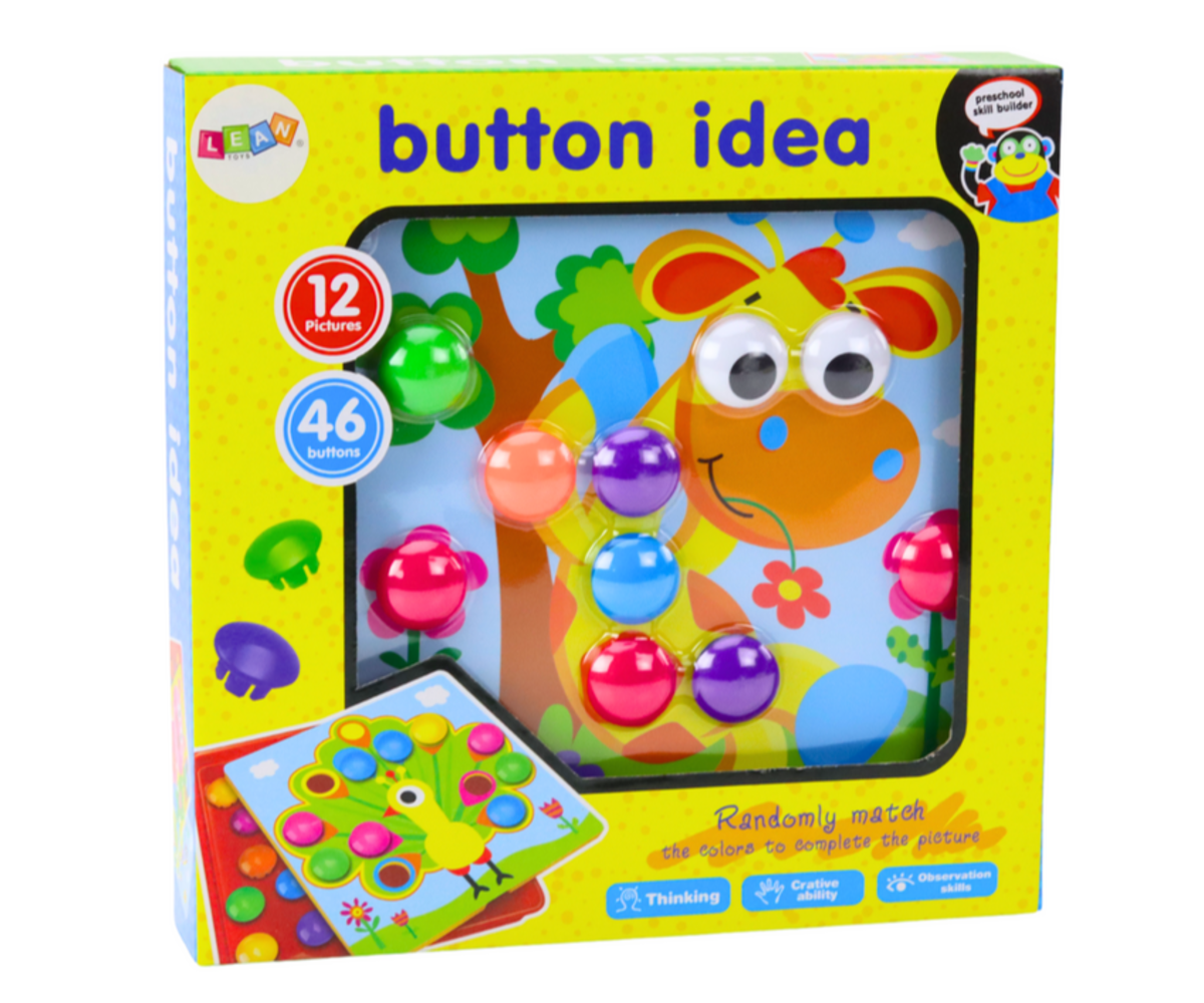 Pusle kirjude nuppudega – valmista 12 pilti, avasta lapse loovus ja arenda motoorikat! See värviliste nuppudega puslekomplekt pakub harivat ja lõbusat ajaviidet, aidates lastel õppida värve, arendada loogilist mõtlemist ja parandada käe-silma koordinatsiooni.