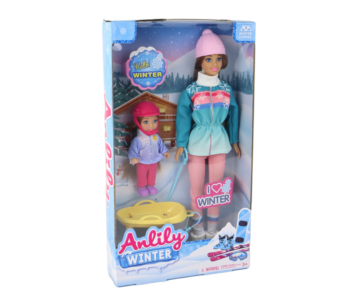 Anlily nukukomplekt Ema ja tütar kelgutamas on võluv mänguasi, mis toob lapse ellu talvise lõbu ja fantaasiarikkaid seiklusi lumes. Nukud on detailideni viimistletud, peegeldades talvist meeleolu ja stiili, muutes mängu kaasahaaravaks ja realistlikuks.