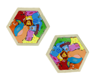 Puidust loomade pusle 12 värvilise tükiga on klassikaline ja hariv mänguasi, mis arendab laste tähelepanu, kujutlusvõimet ja probleemilahendusoskust. Pusle koosneb tugevast kuusnurkse kujuga puidust alusest, mis tagab stabiilsuse mängimise ajal, ning kaheteistkümnest värvilisest elemendist, millest igaüks on eri kujuga ja kujutab mõnda looma.