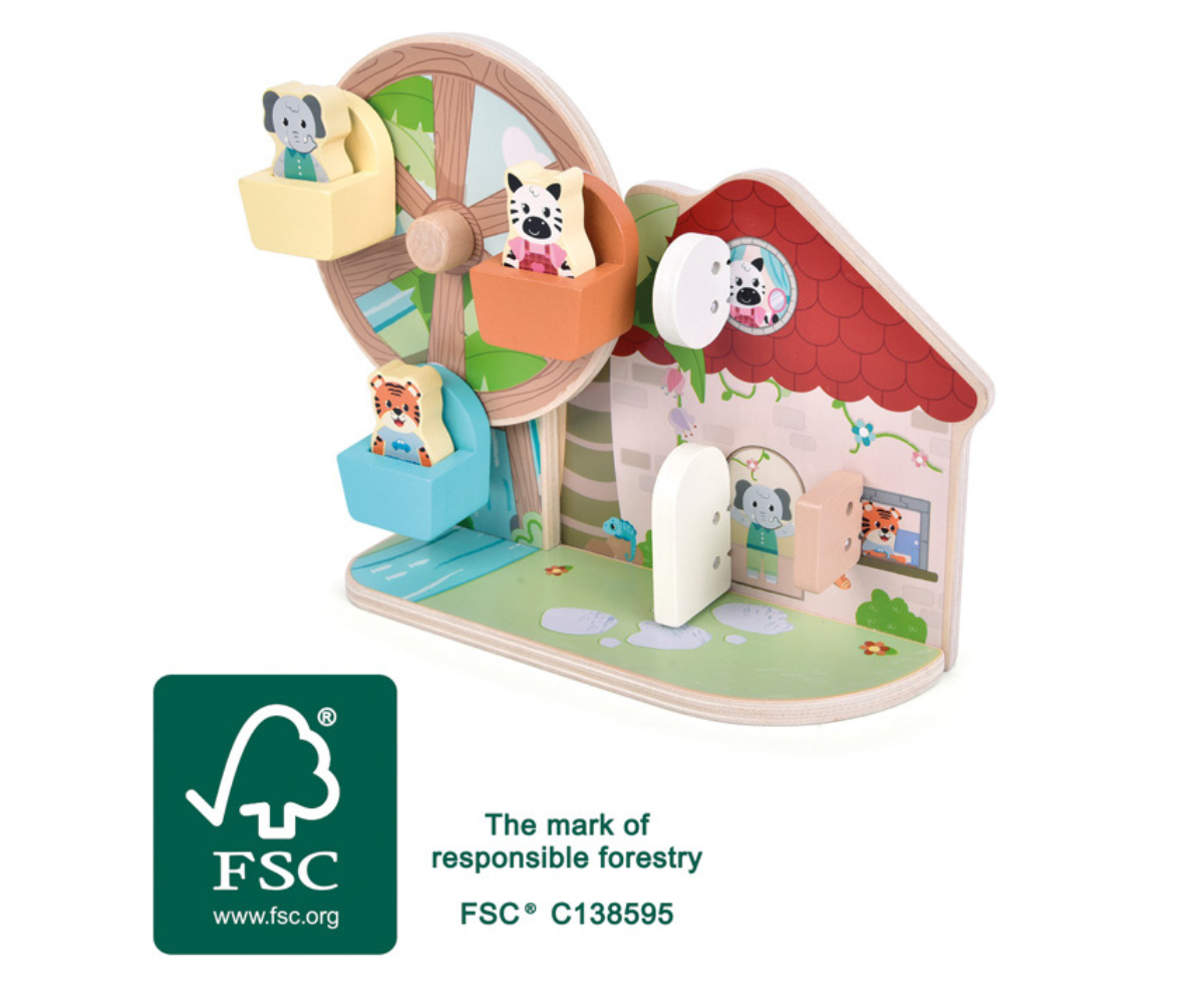 Kõik detailid on valmistatud vastupidavast FSC® puidust, millel on siledad servad ja tugev konstruktsioon. 🎨 Lapsesõbralikud mõõdud ja ergas värvilahendus muudavad mängu turvaliseks ja põnevaks. Lisaks sobib vaateratas ideaalselt lastetoa dekoratiivseks elemendiks.