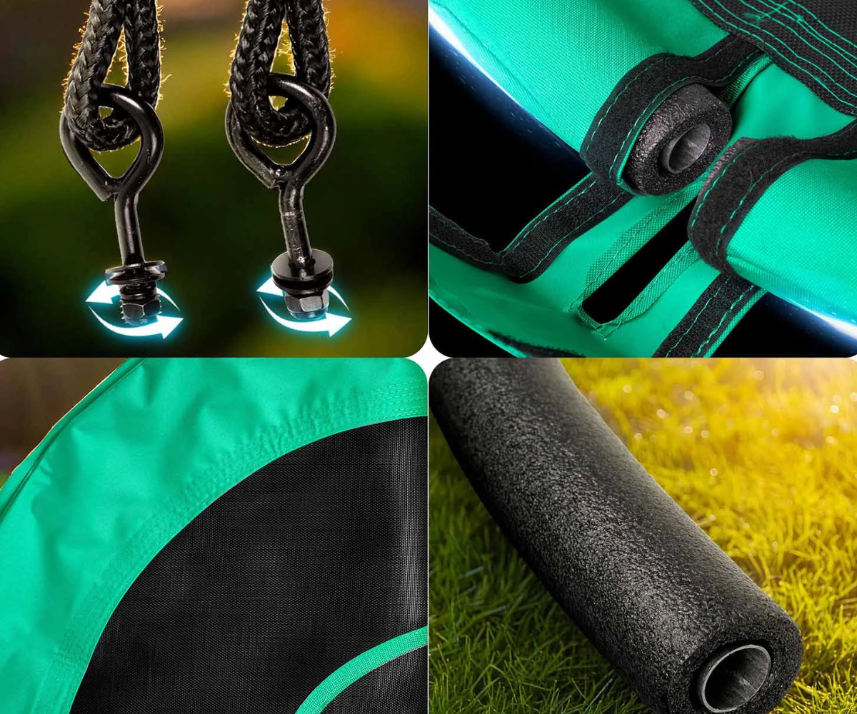 Pesakiik SWINGO Ø110cm roheline on suurepärane valik nii lastele kui ka täiskasvanutele, pakkudes mugavat ja turvalist ajaveetmist aias, terrassil või mänguväljakul. Tänu laiusele 110 cm mahub sellele istuma või lamama mitu last korraga, muutes selle ideaalseks peremängudeks ja lõõgastumiseks värskes õhus.