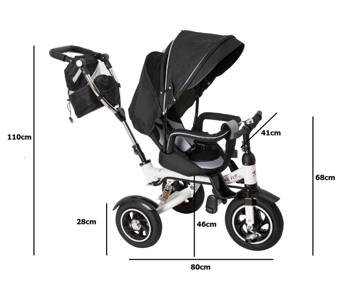 Kolmerattaline jalgratas töötab nii rattana teie lapsele kui ka jalutuskäruna. Ratast on võimalik reguleerida lapse kasvule ja tänu sellele sobib see mitmeks aastaks! Kui teie laps väsib, saate lasta alla seljatoe ning tõmmata alla varju, mis kaitseb last päikese ja vihma eest. Jalgratta pedaale on võimalik peatada nii et need sõidu ajal ei liiguks ja teie laps saaks lihtsalt enda jalgu seal hoida.