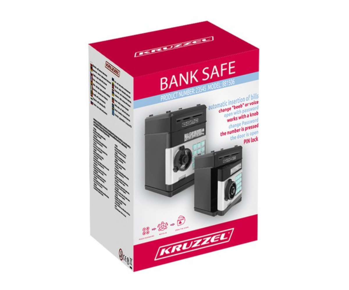 Rahakassa töötab neljakohalise PIN-koodiga, mida saab ise määrata. Kui soovid raha välja võtta, tuleb sisestada õige kood, mis tagab, et seif on alati turvaline. Lapsed saavad õppida, kuidas oma sääste hoolikalt hallata ja samal ajal nautida lõbusat rahakogumise kogemust.