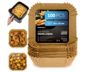 Küpsetuspaber kuumaõhufritüüri jaoks16cm Berdsen – 100tk on praktiline ja mugav lahendus kuumaõhufritüüri (airfryer’i) igapäevaseks kasutamiseks. Need spetsiaalsed ruudukujulised paberist vormid aitavad hoida fritüüri puhtana, vähendavad puhastamisele kuluvat aega ning muudavad toiduvalmistamise veelgi mugavamaks.