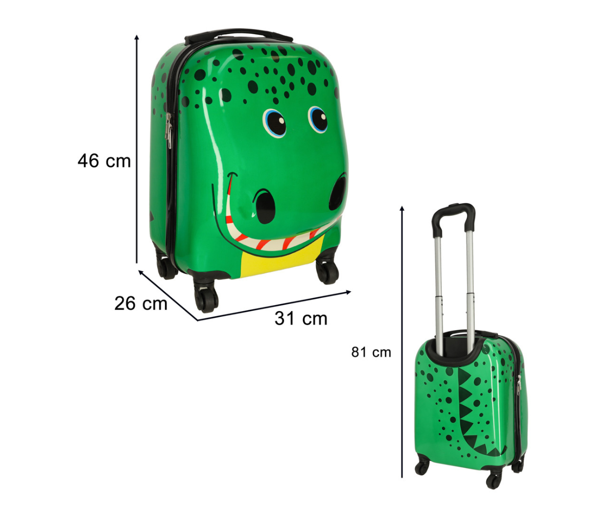Kompaktse ja praktilise suurusega laste reisikohver on lõbus rohelise krokodilli disainiga, mis meelitab last kohvrit iseseisvalt kaasas kandma ja arendab tema iseseisvust. Kohver mahutab kõik lapse vajalikud reisiesemed ning seda on tänu ratastele lihtne ja mugav liigutada.