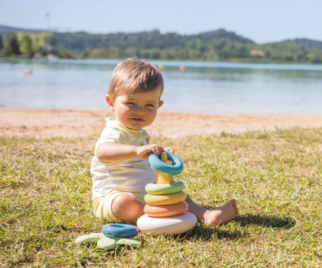 Ladumispüramiid ja klotsid pehmest kummist Karuke (6k+)