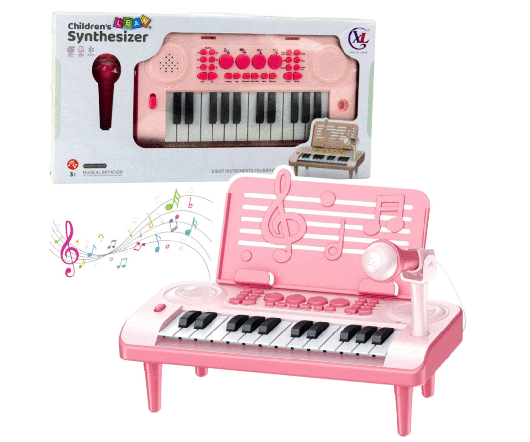 Süntesaator mikrofoniga 24 klahvi – roosa