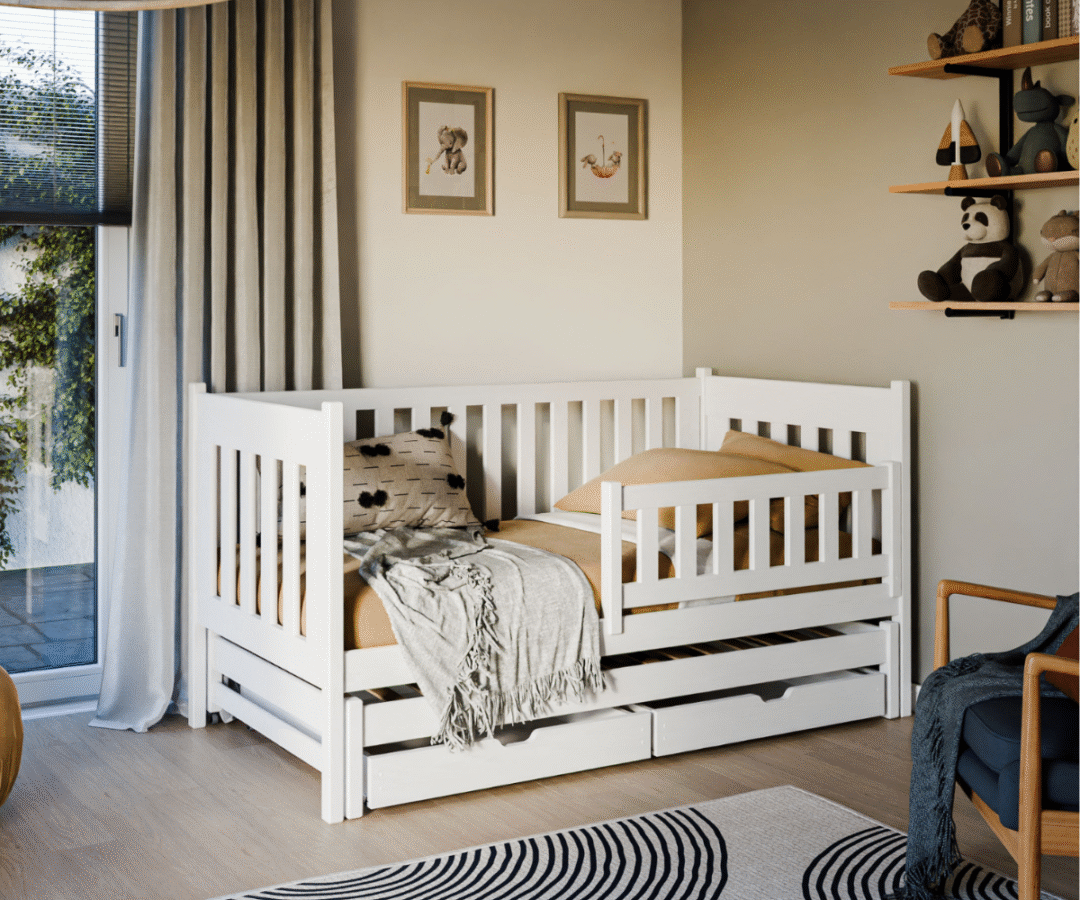 Kahekohaline lastevoodi sahtlitega Senso 90x200cm valge